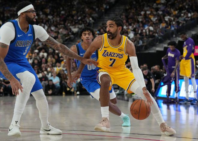 第二就是东契奇。东契奇季前赛出战两场,打太阳输了,今天这场比赛,湖人确实有点狼狈。国王相当于让出一套首发阵容的情况下,湖人迟迟无法拉开分差,东契奇自己打的也比较着急,失误偏多。东契奇确实希望和几位新援产生更多化学反应,但实话实说,艾顿还好,有一定的中投基础,其他人真的要少投篮,特别是斯玛特,太容易断节奏了。斯玛特就像是追梦格林,但比追梦格林更执拗,如果他成湖人得分主力,那湖人进攻得糟糕成什么样?斯玛特到来确实有机会替代芬尼史密斯,但湖人内线防守一塌糊涂。