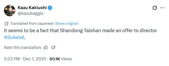 在中超联赛落幕后,多队也已经开始着手为下赛季的建队做积极准备。北京时间12月1日,来自日本著名记者垣内一之的消息称,中超豪门山东泰山俱乐部已经向即将离任的广岛三箭主帅斯基贝提供了报价。